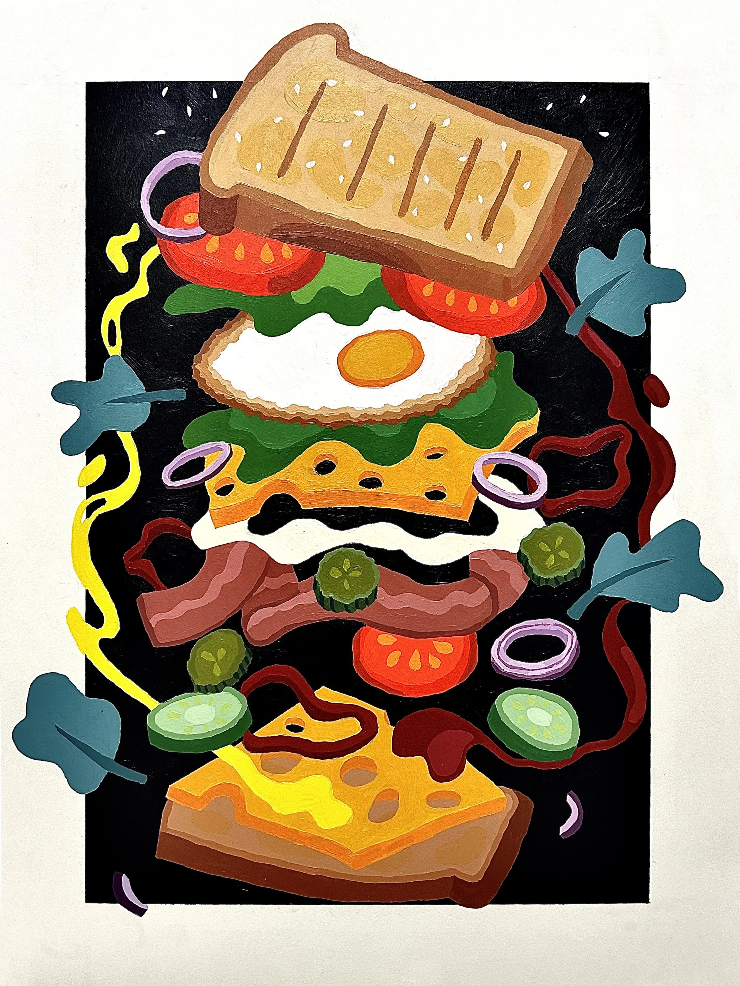 Color, exploration of a color scheme to advance a personal narrative, acrylic on illustration board, 9x12”