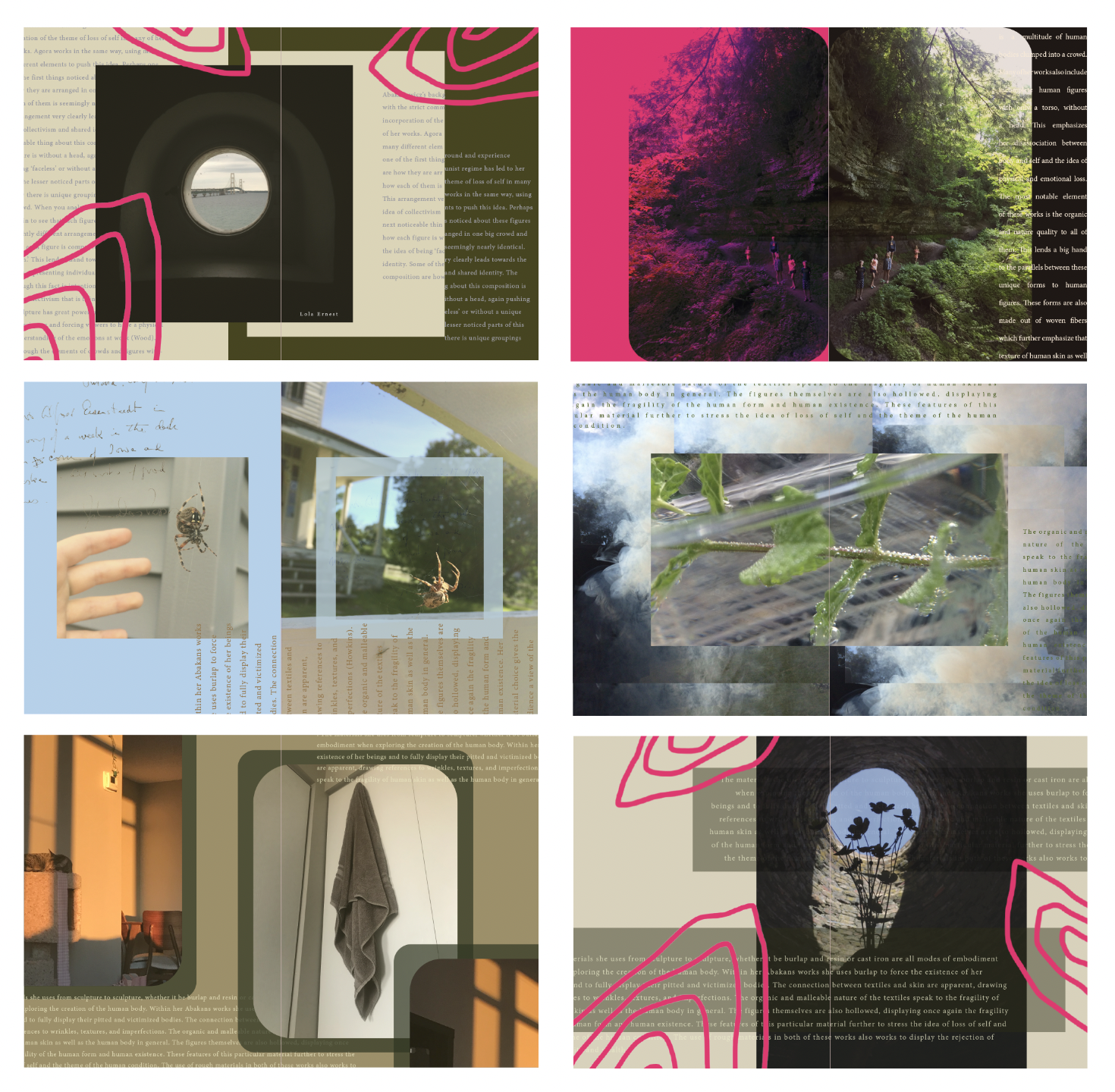 Two-dimensional design artist book integrating compositional concepts and unified thematic elements, Illustrator, Photoshop, and InDesign, printed and bound as well as mounted on illustration board (pictured), 22x30”