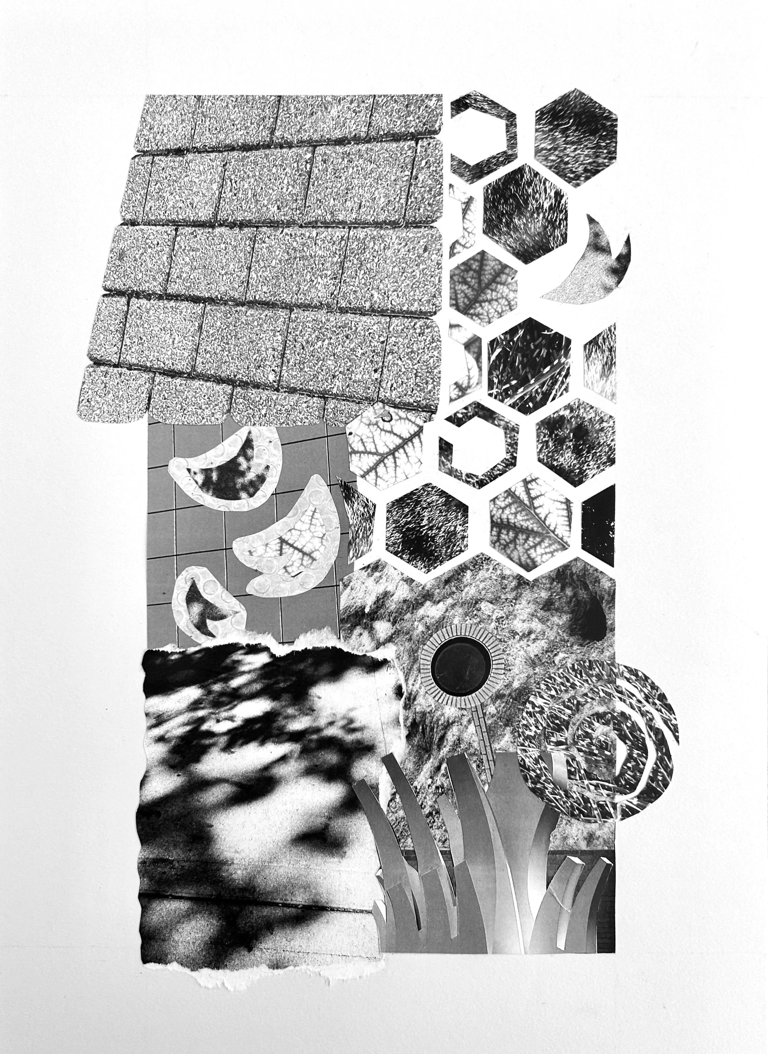 Two-dimensional design elements and composition, collaged photographs mounted on illustration board, 12x18”